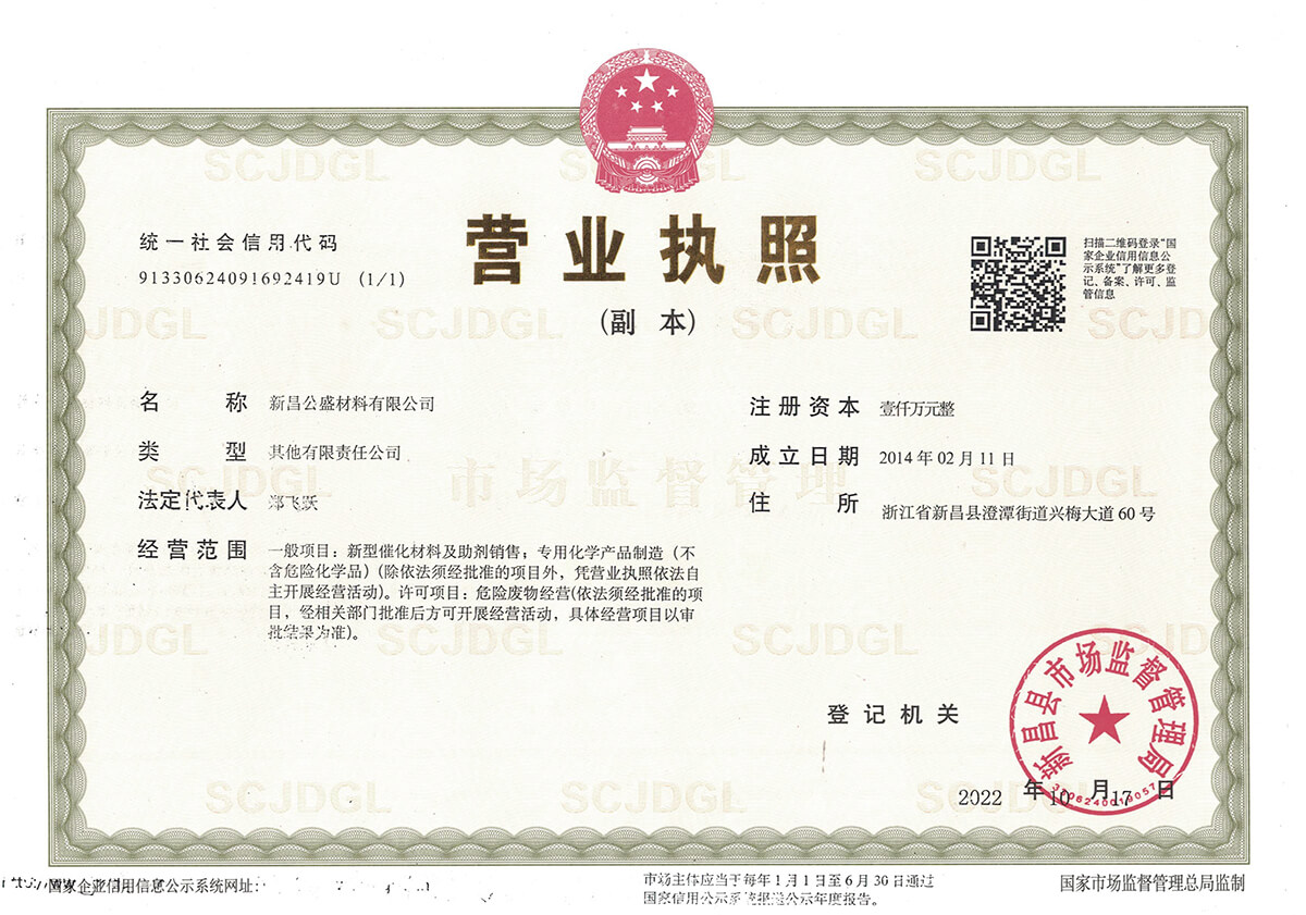 新昌公盛材料有限公司成立于2014年,坐落在江南大佛名城浙江新昌,地理位置優(yōu)越,交通便利,并配備有現(xiàn)代化的廠房和實驗樓,總占地面積80畝。公司聚焦于研發(fā)和生產(chǎn)用于醫(yī)藥、農(nóng)藥、染料、材料等精細化工領(lǐng)域的貴金屬催化劑。目前主要從事鈀炭、鉑炭、釕炭等多項催化劑及醋酸鈀、DPPF二氯化鈀、雙三苯基膦二氯化鈀、四三苯基膦鈀、DBA鈀等均相催化劑的研發(fā)、生產(chǎn)、銷售以及失效鈀、失效鉑催化劑的回收再加工等業(yè)務(wù)。公司成立以來,一直以提升客戶產(chǎn)品的競爭力為經(jīng)營宗旨,通過持續(xù)改進客戶所用催化劑的性能,來提高客戶產(chǎn)品的收率,提高催化劑的套用次數(shù),提高失效催化劑的貴金屬回收率,來降低客戶產(chǎn)品中貴金屬催化劑的成本,進而提升客戶產(chǎn)品的競爭力。